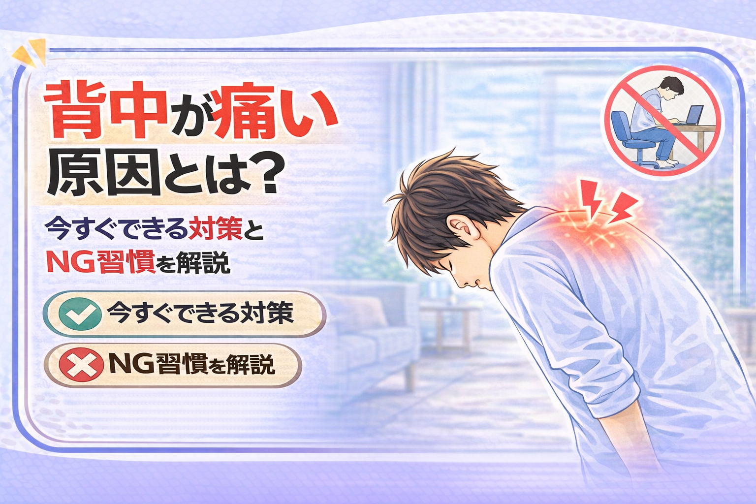 ・長時間のデスクワークで猫背・姿勢が崩れてる→ 猫背の記事